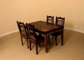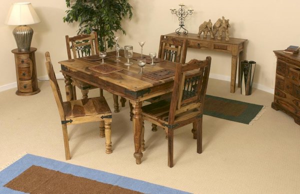 Изысканный обеденный стол из коллекции BOMBAY, выполненный из массива палисандра, способен стать не просто частью комнаты, но и задать тон вашему интерьеру. Элегантные резные ножки ручной работы и винтажная фурнитура из черного металла привносят в дизайн живости и служат ярким акцентом изделия. Размеры стола позволяют с удобством разместить от четырех до шести человек. Деревянная столешница из массива палисандра, обработанная прозрачным лаком, зачаровывает благородством рисунка, изысканностью материала и красотой. Модель долговечна, прочна, надежна и не требует специального ухода. Стол отлично гармонирует с мебелью из коллекции BOMBAY, поставляется в разобранном виде.